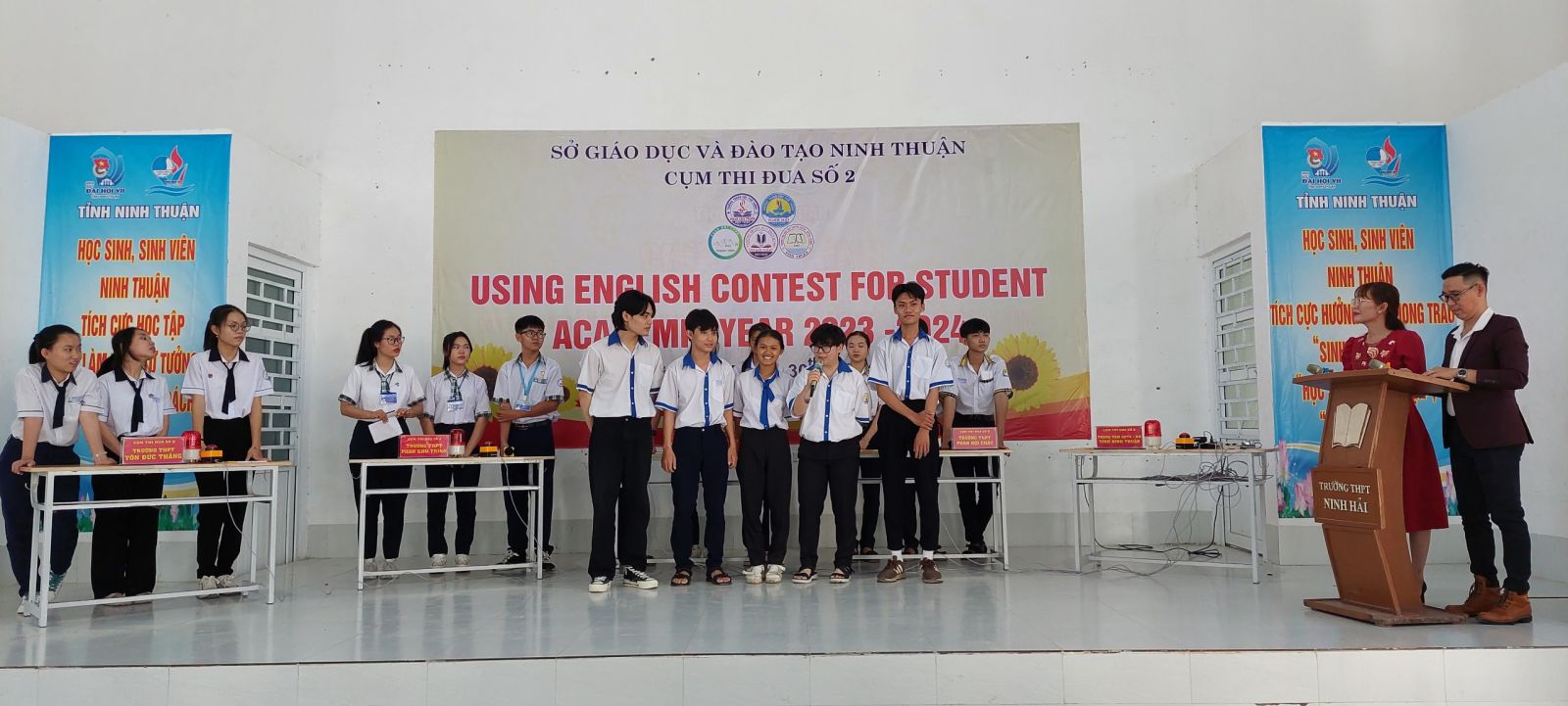 Sáng ngày 30/3/2024, tại Trường THPT Ninh Hải, Hội thi Sử dụng Tiếng Anh cho học sinh năm học 2023-2024 do Trường THPT Phan Chu Trinh đăng cai tổ chức đã diễn ra thành công với sự tham gia của 5 đội đến từ Cụm thi đua số 02, trực thuộc Sở Giáo dục và Đào tạo Ninh Thuận. Đây là một hoạt động nhằm tuyên truyền và nâng cao nhận thức về mục đích, ý nghĩa và tầm quan trọng của việc học tập và sử dụng ngoại ngữ trong giai đoạn hiện nay.